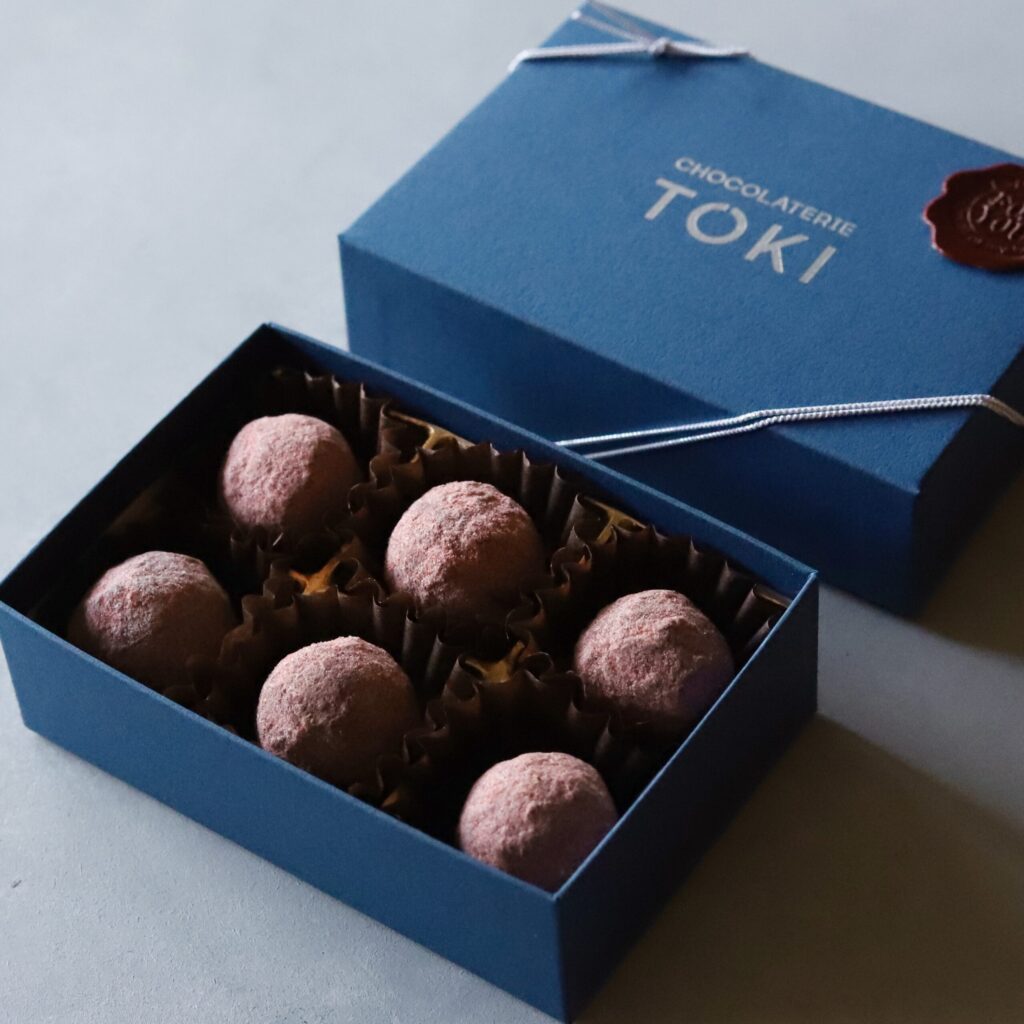 その華やかな吟醸香とふくよかな旨味を、CHOCOLATERIE TOKIが培ってきた技術と経験をガナッシュに詰め込んだ日本酒トリュフです。